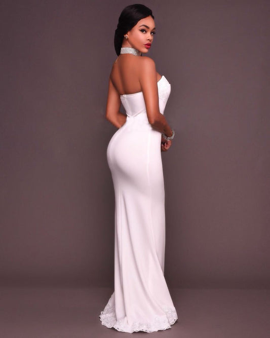 Halter Strapless Dresses For Women Solid Pleated Skirt Summer Beach Sundress